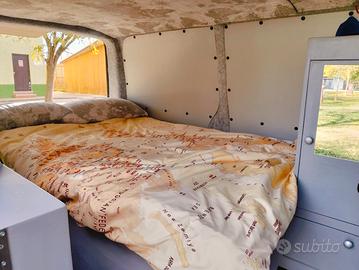 furgone Volkswagen T5 4motion 4x4 TDI 2.5 , 130 cv con allestimento da overlanding: - letto ribaltabile da una piazza e mezza (perfetta anche per due persone) - mobile con tavolo - frigo Angel da 40 lt - pannello fotovoltaico da 120w - doccia esterna con tanica da 50lt tutto l'allestimento è smontabile ad incastro in 10 minuti. 5000km fa circa è stato sostituito turbina, volano bimassa, kit frizione, paraoli, e karterino interno, boccole, trapezi, testine e ammortizzatori blistein +3 il mezzo ha 231.000 km vendo o permuto solo con camper 4x4 con bagno.