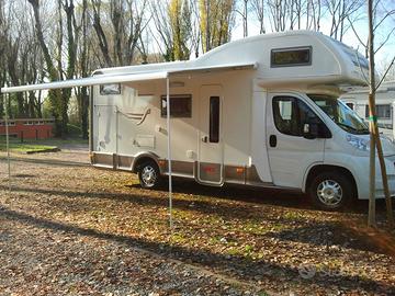 Camper Arca M699 GLT di fine 2013 su Fiat Ducato 2300 150cv 55.000 km, unico proprietario, tenuto al coperto, dotazione : pannello fotovoltaico 130 watt, antenna satellitare Mobilsat plus, tendalino Thule Omnistore di mt 4,5, doppio serbatoio acque chiare, inverter 1500 w, forno a gas, frigo grande da 150l , antifurto satellitare , bagno con doccia grande separata , riscaldamento Thruma combi 6, doppio armadio , 2 letti trasversali posteriori larghi 1 mt e grande letto matrimoniale in mansarda !