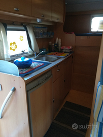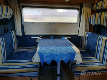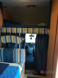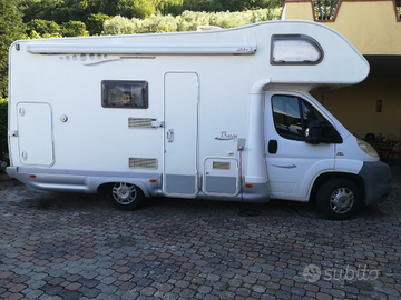 Vendo camper elnag baron 37 su ducato multiget 2300 /130cv 6 posti letto e viaggio, munito di pannello solare, 2 batterie 110 amper, porta bici, retrocamera letti castello in coda, lungo 6,40