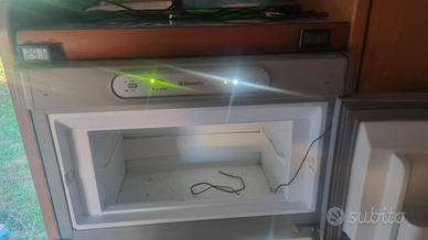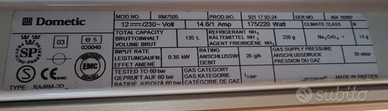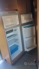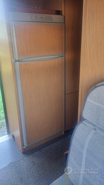 Frigo trivalente doppia porta (apertura a dx) con scelta automatica della fonte di alimentazione. Alto 1245 e largo 525, 130 litri. Equipaggiato su Laika Ecovip del 2004.