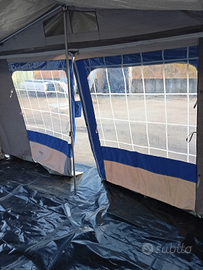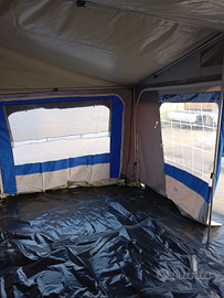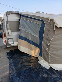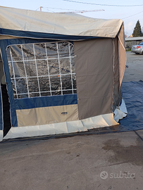 Veranda Con. ver modello Aspen, tg 7, completa di paleria in alluminio, usata 3 stagioni con una parete mai montata perché avevamo il cucinotto (non più disponibile), montata su roulotte più grossa solo a scopo dimostrativo, vendo.