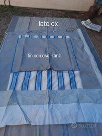 Vendo x inutilizzo una veranda x camper composta da due laterali con finestra e zanzariera, frontale con due entrate x migliore adattabilità a vari modelli di camper e completa di paleria x il montaggio. I colori e il materiale sono ancora perfetti. Dalle foto si vede male perché è stata montata solo x le foto.