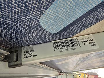 buongiorno, come da titolo vendo veranda Fiamma. modello: Fiamma F45i 400 Ocean larghezza 4m la veranda è stata sostituita xke messa di misura piu grande. mostra segni di utilizzo. ce un piccolo buco come da foto. ma è stata utilizzata fino l'ultima uscita. ha le 2 calotte bianche laterali in plastica rotte da sostituire. funzionante ma vendo come pezzi di ricambio.