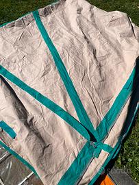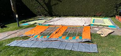 Vendo veranda per roulotte Lander Graziella 401, originale, tenuta in pttime condizioni nella sacca originale, praticamente nuova, usata pochissimo. Senza tubi, ma si possono trovare nei negozi di accessori camper. Composta da tetto, due laterali con finestra con cerniera e zanzariera, due frontali con porta + telo protezione ruote. Prezzo trattabile.