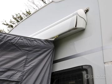La Mobil 320 Easy Air Connected è una veranda gonfiabile adatta ai camper con un'altezza di montaggio compresa tra i 235 e i 250 cm. Essendo dotata di due profili di scorrimento, uno da 4 mm e uno da 6 mm, può essere fissata a qualsiasi tipo di tendalino a cassetta.