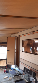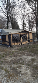 Veranda per roulotte in eccellenti condizioni. Completa di paleria e di vano cucinotto. Sviluppo perimetrale da terra a terra 930 cm. Montata su roulotte lunga 5.50 mt. Euro 500 leggermente trattabile.