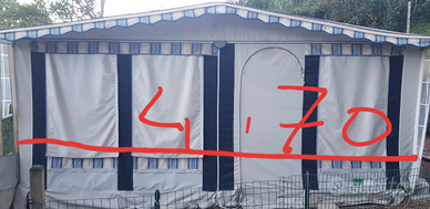 Vendo veranda per caravan usata ma ancora in ottimo stato attualmente installata su una roulotte di 5 metri ma la misura può variare tra i 4.50 e 5.50 metri