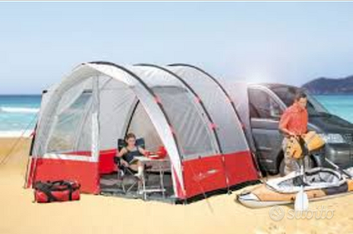 Vendo veranda/tenda da furgone marca Herzog modello Easy Traveler. Utilizzata solo 1 volta! La ho utilizzata su un furgone VW Caravelle passo lungo, quindi si adatta praticamente a tutti i furgoni. Una volta montata la tenda rimane indipendente e ci si può spostare con il furgone. Prezzo di listino 490€.