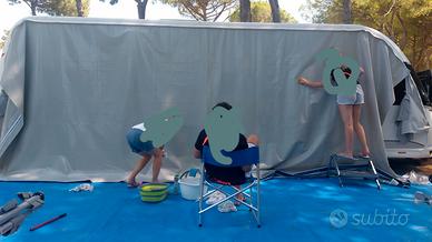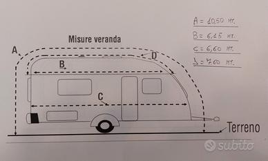 Veranda usata per roulotte a due assi. Misura come da foto. Paleria in alluminio. Marca Nova. Profondità 2.5 mt.