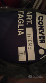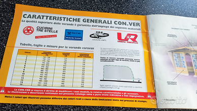 Veranda per Roulotte marca Conver modello Atena. Taglia 7, adatta per roulotte di misura 440 o simili. Dotata di paleria in alluminio completa e perfettamente funzionante. incluso copriruote. il modello in vendita non include il cucinino (venduto a parte) vedere seconda foto. Prodotto di altissima qualità, usato per alcuni anni ma tenuto benissimo e lavato con lavaggio professionale prima della vendita, pronto all'uso.