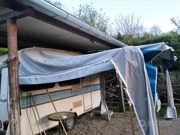 Acquistato la roulotte qualche anno fa Sistemata in un terreno Il vecchio proprietario mi disse che inclusa mi dava una veranda come nuova .Non e' mai servita Ieri mi e' venuta l'idea di montarla per vedere come e' E'veramente nuova,perfetta con tutti i pali di fissaggio nuovi e tutte le varie porte e finestre come mi aveva detto ma io non la monto perche' non serve Non saprei neanche a quanto venderla Inserisco una cifra che sicuramente si puo' rivedere Per le misure ho misurato tutta la lunghezza della roulotte ed e' mt 3,80