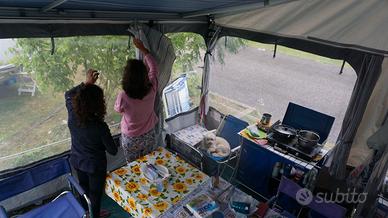 veranda per camper FIAMMA ZIP 4metri - acq. 7/2017 - usata solo 15 all'anno in agosto in montagna ultima volta 8/2023 - in ottimo stato praticamente nuova - integra - con zanzariere e tendine originali - grande finestrone centrale + 2 aperture laterali