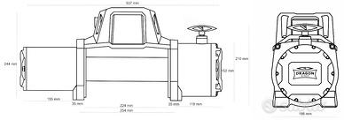 Dimensioni del verricello (LxPxH): 537 mm x 159 mm x 246