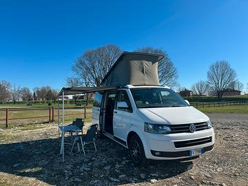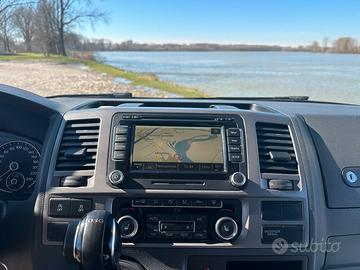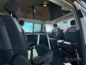 California T5 - Beach Edition Highline 7 posti 2.0 TDI Blue - Motion trazione anteriore Cambio automatico DSG 7 rapporti 230.000 km 4 cerchi in lega diamantati originali VW 17" con pneumatici estivi Michelin 4 cerchi in lega diamantati Aluett da 17" con pneumatici 4 stagioni gancio traino rimovibile e dotato di collegamento elettrico porta scorrevole sul lato destro dotata di chiusura assistita vestri oscurati finestrini anteriori elettrici e funzione AUTO Fari Bi-xeno con luci diurne a led, lavatergifari automatici e fari posteriori a led fendinebbia specchietti retrovisori esterni elettrici e riscaldati specchietto retrovisore interno con sistema di anti abbagliamento automatico sensore pioggia tergicristalli volante multifunzione cruise control sensori parcheggio anteriori e posteriori telecamera posteriore sistema infotainmant VW- RNS 510 con DAB+, navigatore integrato, lettore CD/DVD con 6 altoparlanti e telefono e bluetooth climatizzatore automatico trizona riscaldamento supplementare Webasto letto superiore dotato di doghe in legno e materasso con presa 12 V e luce di cortesia tenda superiore colore grigio con tre aperture e zanzariere sedili anteriori dotati di braccioli su entrambi i lati, girevoli e riscaldati elettricamente sedili passeggeri seconda fila con braccioli su entrambi i lati, ribaltabili, scorrevoli ed estraibili, dotati di cassetto portaoggetti, di fissaggio Isofix e trasformabili in seggiolino con protezioni laterali divano terza fila ribaltabile, scorrevole ed estraibile dotato di tre cassetti portaoggetti apribili dal vano passeggeri e dal bagagliaio bagagliaio dotato di cappelliera scorrevole, robusta ed estraibile luci di cortesia per il vano cabina e vano passeggeri 3 prese 12 v nel vano passeggeri tende oscuranti e privacy a rullo integrate nel vano passeggeri tende oscuranti per vano cabina su misura tavolino vano passeggeri con due sedie pic nic tendalino esterno estraibile tappeti in velluto vano cabina e vano passeggeri Brandrup