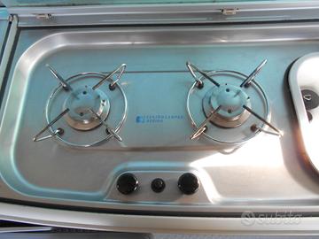 Cucina con piano cottura a 2 fuochi e lavandino separato