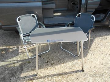 1 tavolo e 2 sedie da campeggio originali con alloggio nel portellone laterale (tavolo) e nel portellone posteriore (sedie)
