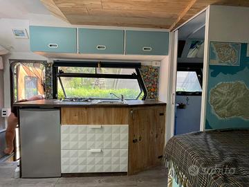 Volkswagen 295 CP Camper ITALIA, Furgone attrezzato uso campeggio (a libretto). Scocca in vetroresina, Immatricolato 1982, 2383 cc Diesel, trasmissione posteriore con ruote gemellate. Meccanica generale in buono stato.110000km Consigliabile rivedere la cinghia di trasmissione che comunque è stata sostituita (2016, 86000), sostituzione filtro e olio motore. Revisione regolare 19/09/2026 parabrezza scheggiato ma stabile. Restyling completo totalmente autonomo: *Pannello solare *Regolatore di carica 12V/24V 50A *Caricabatterie P35 (e mantenitore) 12/24V *Inverter Green Cell INV22 1500W *Stacca batterie *Pompa Shurflo Trail King 7 *Boiler elettrico Elgena KB6 (con interruttore facilmente raggiungibile) *Telecamera posteriore *Cucina con 2 fuochi a Gas *Frigorifero nuovo *Serbatoio acqua chiara 150lt, acque scure 100lt acque chaire 100lt *Cinebasto ZM8001 1-8kw *Porta Potti Elegance (cassetta di scarico artigianale) * Presa esterna 220V *Tendalino Fiamma *generatore a Benzina MAI USATO, “Casper” è un mezzo iconico facilmente riconoscibile dalle linee semplici e un po squadrate, con una rivisitazione moderna all'interno rendendolo accogliente, a parere mio per 4 persone massimo, comunque omologato per 6. La porta di ingresso è stata ricostruita in legno, aggiungendo quel calore che solo il legno sa dare, ricordando in parte anche come nasce in origine. Come ogni LT di quegli anni è presente della ruggine nella portiera sinistra e sul pianale di ingresso (dove si appoggia il piede, non strutturale). Il cruscotto è minimale ma indica tutte le informazioni necessarie, sicuramente ci sono poche luci che abbagliano. Si lascia guidare con gusto, il cambio a 5 marce è fluido e pieno, il prima è praticamente inarrestabile, in quarta uguale, la velocità cambia poco! (la quinta marcia è la Retro, utile per altro per usare le braccia. Dato che il servo sterzo è stato introdotto anni dopo!). Monta un Autoradio con due casse funzionanti! ma spesso spento per lasciar c