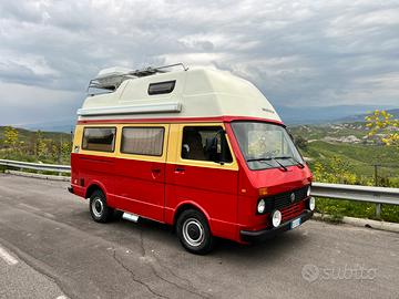 Volkswagen LT28 è un camper d'epoca con allestimento Westfalia a chi desidera un viaggio divertente, romantico ed economico. 5 posti a viaggiare e 4 posti a dormire. Offre un letto dinette 128x195cm e un letto mansardato 150x195cm, frigorifero trivalente (a gas, a 12V e a 220V), cucina a gas con due fornelli, lavello cucina, cabina doccia e lavello e porta potty, serbatoio d'acqua da 50 litri, boiler da 10 litri a 220V e a gas, l'oblò con ventilazione in cellula e riscaldamento a carburante. Il camper è considerato un mezzo robusto e affidabile, adatto per i viaggi in coppia o in famiglia. È predisposto di una seconda batteria per i servizi e di un pannello solare, portapacchi, 2 portabici, servosterzo, motore 2,4 diesel aspirato.
