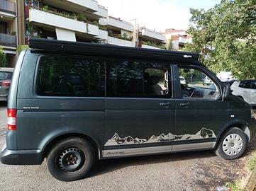 Allestimento tipo California Beach, tetto a soffietto, 7 posti in fase di guida, 4 per dormire.