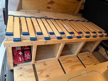 Letto con doghe lungo 2 metri, largo 145 cm con materasso nuovo di spessore 12 cm con Memory, una piazza e mezza fatta fare su misura da un artigiano con brevetto anti-sovrapposizione