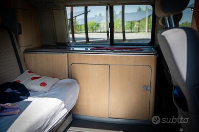 Vendo Volkswagen California T5 Comfortline del 2005, motore 2.5 TDI 131cv, circa 280.000 km. Mezzo in ottime condizioni generali, affidabile e pronto a viaggiare. Utilizzato regolarmente sia per viaggi che per uso quotidiano, mai lasciato fermo a lungo. Carrozzeria completamente riverniciata 2 anni fa a seguito di grandine leggera (nessun incidente), oggi in condizioni eccellenti, sostituzione dei fari anteriori per ingiallimento e usura. Meccanica e manutenzione: •Manutenzione regolare ogni 15.000 km presso la stessa officina da 8 anni •Motore 2.5 TDI con distribuzione a cascata di ingranaggi (no cinghia) •Cambio fluido e preciso •Turbo smontato, in Vw 10/2025 controllato e pulito •Scatola sterzo sostituita •Impianto climatizzatore completamente rifatto 04/2025 •ABS rigenerato 04/2025 •Ammortizzatori premium •Dischi e pastiglie ATE con circa 15.000 km Camperizzazione e dotazioni: Allestimento Comfortline completo Sedili riscaldati Stereo Pioneer con Apple Car play/Android Auto Tetto a soffietto originale Vw appena sostituito 10/2025 con modello T6.1 ad apertura frontale completa Sistema idraulico soffietto revisionato (sostituito olio con vw originale, sostituzione di entrambi i pistoni) Cucina completa (frigo, fornelli, lavello) tutto funzionante Riscaldamento ausiliario Webasto funzionante Impianto acqua perfetto con pompa immersione nuova e originale VW Doccia esterna Batterie AGM (3 anni) Illuminazione interna a LED Sedili girevoli + tavolino Extra: Cerchi in acciaio verniciati a polvere neri Condizioni: Camperizzazione in buono/ottimo stato generale, con normali segni di utilizzo coerenti con età e chilometraggio. Documentazione: Gran parte dei lavori eseguiti è documentata con fatture. Gli interventi sulla camperizzazione sono stati eseguiti con cura e attenzione. Vendo per inutilizzo. Dopo molti viaggi non lo uso più molto.