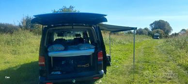 Anno: Giugno 2010 Chilometri: 230.000 Proprietari: Secondo proprietario da febbraio 2016 Colore: Nero metallizzato Posti omologati: 7 (a libretto) Descrizione: Vendo VW T5 Multivan (2°serie) omologato autocaravan a libretto (costi gestione minimi, circa 60 euro bollo e 250/300 euro assicurazione), perfetto per chi cerca un veicolo versatile e affidabile, ideale per viaggi e campeggio. Sempre tagliandato presso officine ufficiali Volkswagen, con manutenzione documentabile. Caratteristiche principali: • Centralina ABT potenziata a 180 CV (omologata, migliora prestazioni e consumi) • Assetto ribassato con barre stabilizzatrici • Cerchi in lega da 17” con gomme recenti • Gancio traino rimovibile (a libretto) • Mobile cucina rimovibile • Computer di bordo, navigatore e radio con schermo touch, lettore CD • ABS, Airbag, ESP • Interruttore indipendente per luci abitacolo • Sensori di parcheggio anteriori e posteriori con videocamera posteriore • Prese USB aggiuntive per ricarica dispositivi • Specchietti esterni riscaldati e vetri posteriori oscurati (grado 5) • Panca letto multiflexboard con materassino • Posti letto 2 • Riscaldamento ausiliario Webasto programmabile • Climatizzatore automatico a zone • Televisore da installare con telecomando incluso • Cambio 6 marce e assistente partenza in salita • Tendalino marca Fiamma modello S35 nero con tenda grigia antracite • Batteria nuova cambiata il 23.02.2026 Manutenzione e lavori effettuati (con fatture): • Motore nuovo a 134.000 km • Cinghia distribuzione rifatta 58.000 km fa • Cinghia servizi rifatta 58.000 km fa • Dischi freno nuovi • Radiatore motore e condizionatore sostituiti • Verniciatura completa Prezzo: € 24.000,00 (trattabile) Veicolo in ottime condizioni, pronto all’uso e perfetto per chi ama viaggiare con comfort e stile. #california#bullit#westfalia#marco polo#camper