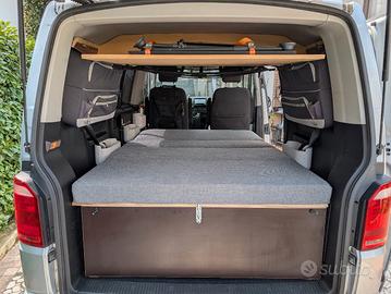 T6 Caravelle l 2016 2.0 150 cv cambio manuale 6 rapporti con 128000 km, 8 posti. Appena rifatta cinghia di trasmissione, ammortizzatori, trapezi e dischi dei freni. Camperizzato artigianalmente. Batteria servizi da 100 ampere con varie prese di ricarica e inverter CA 300w, riscaldatore da parcheggio 2 kW. Divano letto con ripiani interni ed esterni, materasso seminuovo, comunque sfoderabile e lavabile. Rack cucina a parete, tavolino apribile all'interno e sedile passeggero ruotabile 180°, estintore. Pannelli oscuranti termici e a soffietto per cristallo anteriore Antifurto presa OBD. Porta biciclette posteriore. Molto altro da dire a chi interessato.
