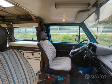 Vendo VW T3 Camping Westfalia primissima serie immatricolato camper, anno 82, motore 1.6 d con cambio a 4 rapporti. Motore rifatto un po' di anni fa, ora ha circa 20.000 km. Tenda a soffietto del tetto nuova. Tende interne tutte nuove. Imbottitura sedili nuova. Webasto diesel nuovo. Tendalino FIAMMA da campeggio nuovo. Parasole in alluminio . Frigo trivalente perfettamente funzionante. Riverniciato poco tempo fa, compreso antirombo su interno parafanghi. Decorazione adesiva che può essere tolta. Tenuto sempre in garage, condizioni pari al nuovo, perfetto e pronto per partire in ogni momento. Non consuma olio neanche su viaggi lunghi, un vero mulo . 4 posti .