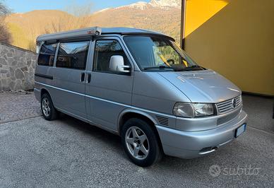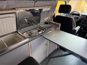 T4 California+ Generation allestimento Westfalia Anno: 2001 Motore 2.5 TDI, 228.000 km. Revisionato Febbraio 2026. Omologato 4 posti. (Motivo della vendita) La carrozzeria è stata revisionata nel 2019 ed è in buone condizioni generali. C’è qualche graffio sul paraurti posteriore destro, segnalo per onestà. Colore grigio argento metallizzato. Guarnizione del tetto a soffietto cambiata nel 2024. Gli interni sono tenuti molto bene, i tappeti originali sono nuovi, mai stati usati e i coprisedili sono stati rifatti su misura di recente. Dotazioni camper: - Tetto alzabile Westfalia con letto matrimoniale superiore - Divano/letto matrimoniale posteriore - Cucina con fornello a gas e frigorifero - Tendalino laterale - Clima in cabina - Riscaldamento webasto perfettamente funzionante - Portabiciclette posteriore - Gancio di traino - 4 gomme estive su cerchi in lega (foto) - 4 gomme invernali con cerchi in ferro (incluse nel prezzo) Un mezzo versatile e completo: in pochi minuti si trasforma da furgone familiare a casa su ruote per 4 persone. Ottimo per montagna, mare o giri in Europa. Conservato bene, visibile previo appuntamento zona Trento. No perditempo.