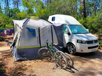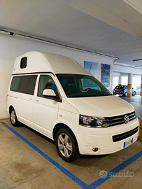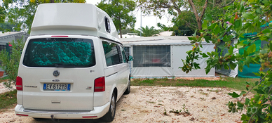 Vendesi VW T5 camperizzato, immatricolato autocaravan nel maggio 2019, tetto alto reimo, 180 CV, 217000 km, 6 posti viaggio, 4x4 con blocco del differenziale, modulo cucina, tavolino interno, pannello solare, letto superiore e panca letto.