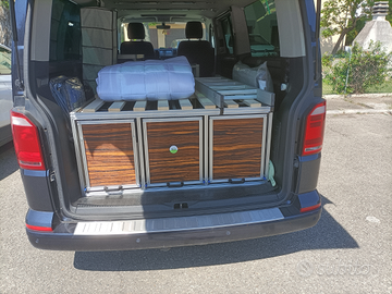Camping box con possibilità di dormirci sopra : cassetto estraibile cucina - cassetto estraibile frigorifero+ frigorifero ( nuovo) - cassetto estraibile lavandino funzionante inox ( nuovo) con taniche per carico e scarico acqua
