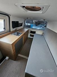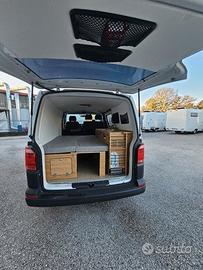 Volkswagen Trasporter T6 2.0Tdi 75kw Anno 2018 km 84000 3 posti omologati omologazione Uso Abitazione Aria condizionata in cabina , chiusure centralizzate, cambio manuale , doppio airbag , radio , vetri elettrici, specchi elettrici e riscaldati. Coibentazione termica di alto livello, obl Maxx Fan, impianto elettrico 12v , inverter, frigo , lavabo con tanica acqua pulita e sporca , divano che si trasforma in letto matrimoniale , finestra laterale . Veicolo in perfette condizioni , garanzia 12 mesi