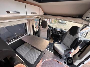 EDITION FIRE (di Serie): Tendalino 375×250 antracite - Media-Center 6.8'' - cerchi in lega su pneumatici di serie - pannello di controllo del riscaldamento Truma iNetX - sistema di oscuranti plissettati per parabrezza e vetri laterali - videocamera per la retromarcia - gradino d' ingresso elettrico - zanzariera porta - oblò 70×50 anteriore - paraurti anteriore verniciato nel colore del veicolo - illuminazione d'ambiente nel bagno - finestra in bagno - grondaia sopra portellone scorrevole dotata di illuminazione a Led - predisposizione radio - piano di lavoro ribaltabile e 2 portaborse - topper per materasso - lampade leggi libro in cabina guida - presa SCHUKO 230v in dinette e parte posteriore
