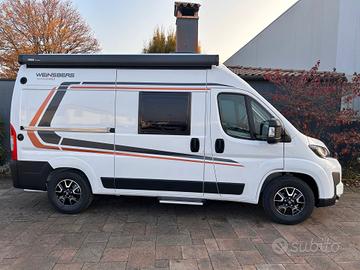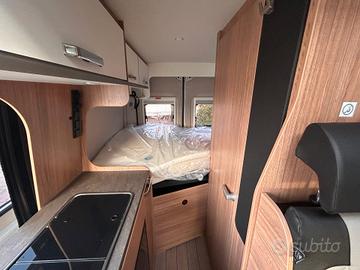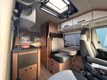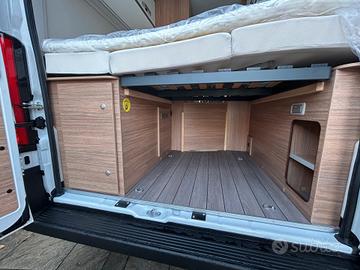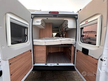 FURGONATO CON LETTO MATRIMONIALE TRASVERSALE IN CODA E TETTO A SOFFIETTODucato 2.2 140cv Telaio Light 3500kg Euro 6e alimentazione: Gasolio massa: 35q.li posti omologati: 4 posti letto: 4 lunghezza:5.41m altezza: 2.75m larghezza: 2.05maccessori optional:SERBATOIO CARBURANTE 90LT