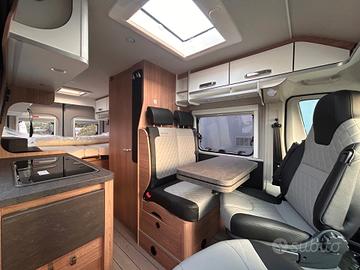 EDITION FIRE (di Serie): Tendalino 375×250 antracite - Media-Center 6.8'' - cerchi in lega su pneumatici di serie - pannello di controllo del riscaldamento Truma iNetX - sistema di oscuranti plissettati per parabrezza e vetri laterali - videocamera per la retromarcia - gradino d' ingresso elettrico - zanzariera porta - oblò 70×50 anteriore - paraurti anteriore verniciato nel colore del veicolo - illuminazione d'ambiente nel bagno - finestra in bagno - grondaia sopra portellone scorrevole dotata di illuminazione a Led - predisposizione radio - piano di lavoro ribaltabile e 2 portaborse - topper per materasso - lampade leggi libro in cabina guida - presa SCHUKO 230v in dinette e parte posteriore