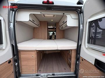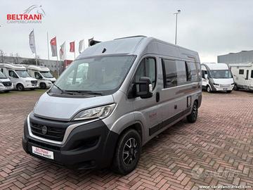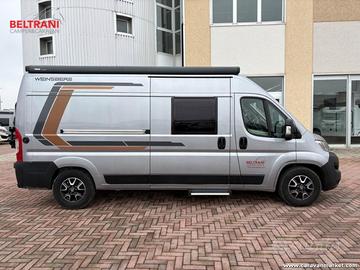 Scopri il Weinsberg CaraBus 600 MQ usato, furgonato maneggevole perfetto per van life e famiglie avventurose. dimensione totale 5,99 m su base Fiat Ducato 2.2 diesel 140 CV, con 4 posti omologati e 2+1 posti letto (letto matrimoniale trasversale posteriore 194x152 cm + dinette convertibile 180x70 cm).