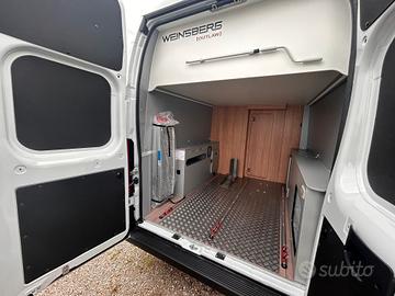 FURGONATO CON LETTO GEMELLO ALTO FISSO IN CODA CON AMPIO GARAGE ADATTO A CHI PRATICA SPORT