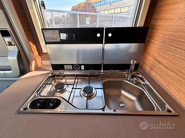 Gli interni sono organizzati in modo intelligente: la cucinacompatta con piano cottura a 2 fuochi e frigorifero trivalente da 98 L permettedi preparare pasti con facilità, mentre i numerosi vani di stivaggio aiutano amantenere ordine e funzionalità. Il layout con letto posteriore e bagnocompleto garantisce comfort quotidiano anche durante le soste più lunghe.L'atmosfera interna è luminosa e accogliente, grazie a materiali resistenti efiniture curate.I nostri mezzi ex noleggio sono selezionati e controllati concura, con manutenzione documentata e verificata per offrirti un camper giàcollaudato e pronto a nuove avventure.Scegliere un Caraloft 550 MG della nostra flotta significapuntare su un mezzo compatto, pratico e conveniente: la soluzione ideale perentrare nel mondo del plein air con un investimento sicuro.
