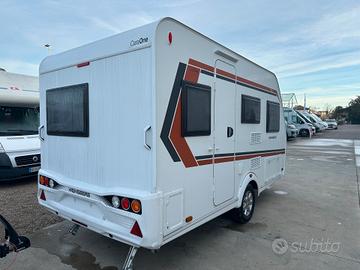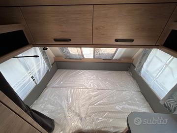 CARAVAN CON SEDUTA IN ENTRATA E LETTO MATRIMONIALE ANTERIORE massa: 1150Kg posti letto: 3 lunghezza complessiva con timone: 5.93m lunghezza complessiva interna: 4.70m larghezza esterna: 2.20m altezza complessiva: 2.57m accessori optional installati:AUMENTO DI PORTATA A 1.150KG PACCHETTO FEEL GOOD: TRUMA Therme con collegamento per cucina e bagno (solo 230 V), Serbatoio acque chiare da 45 litri, fisso, Impianto doccia bagno: miscelatore doccia con supporto e tenda doccia PACCHETTO CONVENIENCE: Piedini di stazionamento rinforzati, stabilizzatore, Termoventilazione a 12 V, Zanzariera porta, oscuranti e zanzariere alle finestre PACCHETTO EXTERIEUR: cerchi in lega, pareti laterali in lamiera liscia - serigrafie speciali - copritimone SPORTELLO DI SERVIZIO ANTERIORE DESTRO FINESTRA IN BAGNO ESTENSIONE SUPERFICIE LETTO PROLUNGA PIANO CUCINA PRESA ESTERNA COMBI (corrente + TV) PACCHETTO PLUS PER PRESE TAPPEZZERIA STONE WATER VEICOLO NUOVO IN PRONTA CONSEGNA!! GAMMA 2026!! VEICOLO COMPRESO DEGLI ACCESSORI, TOTALE CHIAVI IN MANO: € 23.014.00