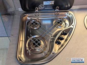 Gli spazi interni sono ottimizzati con cura: armadietti e vaniportaoggetti consentono di tenere tutto in ordine e a portata di mano. Lacucina, pur essendo compatta, è completa di piano cottura a tre fuochi, lavelloe frigorifero trivalente. Il bagno, funzionale e ben organizzato, assicura lagiusta privacy anche lontano da casa.