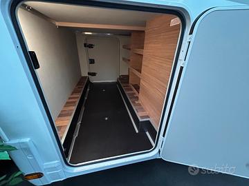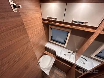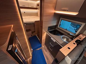 PACCHETTO SMART I:Illuminazione d'ambiente, Oblò 70 x 50 cm (anteriore), Sistema di oscuranti plissettati per parabrezza e vetri laterali, Coprisedili cabina nel design WEINSBERG, Serbatoio di recupero acque grigie coibentato e riscaldato