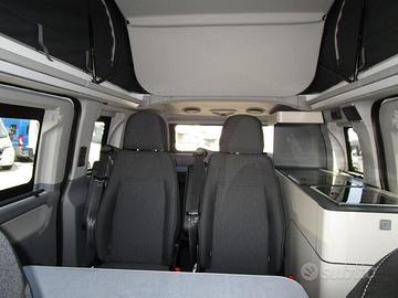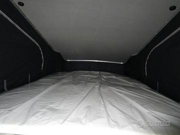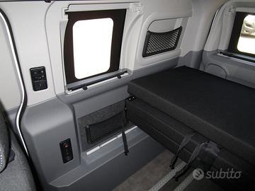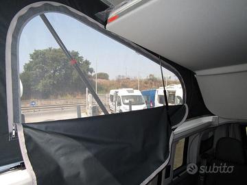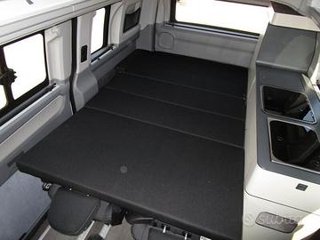 Camper puro super compatto lungo 5,05 m, largo 2,03 m ed alto 2,06 m (adatto per entrare nei parcheggi sotterranei o dove sono presenti sbarre). 4 posti letto e 4/6 posti omologati (6 sono optional) con letto matrimoniale 200x127 cm nel tetto a soffietto sollevabile e ulteriore letto da 190x112 cm sotto, abbassando i sedili posteriori.
