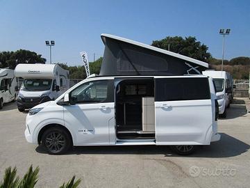 Molto accessoriato con: Pack Club Joker (Telaio 32 quintali, regolatore di velocità cruise control intelligente ed adattivo, specchietti chiudibili elettricamente, sistema keyless senza chiave, freno a mano elettrico, parabrezza riscaldabile, cruscotto digitale, autoradio FORD touchscreen da 13", navigatore GPS, comandi al volante, retrocamera, antenna DAB ed altoparlanti, aria condizionata motore automatica, sedili anteriori girevoli e riscaldabili, sensore luci e pioggia con proiettori anteriori full LED, cerchi in lega da 17", o da 19" nella versione Premium), Pack Security (Sensori di parcheggio anteriori e posteriori, mantenimento di corsia, BLIS segnalazione veicoli in arrivo, attenzione del conducente, assistenza frenata di emergenza, riconoscimento segnaletica stradale). Vernice pastello bianca (metallizzata per versione Premium), porta scorrevole a destra e sinistra, oscuranti sulle finestre, portellone posteriore apribile con tergilunotto, vetri posteriori oscurati, doccetta esterna, lavello cucina con 1 fuoco, frigorifero a compressore estraibile da 25 lt, riscaldamento diesel Eberspacher, batteria AGM 95Ah, serbatoio acqua pulita da 25 lt e di recupero da 15 lt. Tendalino optional