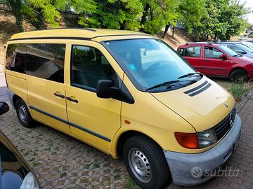 Vito Mercedes 112 td, anno 2000, 380.000Km, omologato come auto, 7 posti viaggio e 4 posti letto, vetri elettrici, vetri posteriori oscurati, sedili e panca facilmente rimovibili creando un vano carico da furgone, panca trasformabile in letto, tetto a soffietto con telo nuovo, sedile lato passeggero ruotabile, tavolino interno estraibile, in dotazione piccola cucina in legno autocostruita. Fondo furgone senza ruggine. Carrozzeria in discrete condizioni basta una lucidata e torna brillante. Interni in discrete condizioni. Da vedere, no perditempo , prezzo leggermente trattabile dopo visione non accetto offerte assurde o scambi. Lo vendo solo per scarso utilizzo non ho fretta di vendere, astenersi venditori e affaristi. Se l'annuncio è visibile è ancora in vendita.