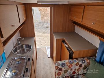 Autocaravan rimesso a nuovo, compatto con 5 posti sul libretto, motore Diesel 2.4, cambio manuale, portapacchi, cucina 2 fuochi, frigorifero, gli interni e la carrozzeria rimessi a nuovo. Lunghezza 5,850 m. Gancio traino omologato (massa rimorchiabile 2000Kg), Portabici omologato a libretto. Disponibile per qualsiasi prova.
