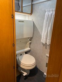 vendo semintegrale in monoscocca su Sprinter 316 cdi della camper marostica, 5,90 mt, anno 2005, tagliandato in Mercedes, km 203000, sempre rimessato al coperto, sono il secondo proprietario, tre posti letto, un quarto lo ho ricavato sui sedili guida, rete a doghe e materasso fatti su misura, 6 posti viaggio, clima motore , cambio automatico, freno Telma, gancio traino con staffe porta moto, porta bici, frigo trivalente automatico, wc in ceramica con serbatoio nautico 50 litri, clima cellula con pompa di calore Telair 5400, riscaldamento truma combi a gas, bombolone gpl, mai cucinato internamente, solo caffè la mattina, il camper è disponibile per qualsiasi prova, tutto perfettamente funzionante, viene consegnato con gomme nuove e tagliando fatto