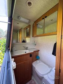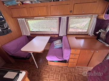 Acquistato nel 2011 sono il secondo proprietario. Km originali 85mila motore 2.5 td. Cellula in vetroresina Dotazioni: frigo compressore nuovo-stufa truma-boiler truma-batterie nuove-portabici/tutto rinforzato-bombolone gpl messo nuovo ad aprile e trascritto a libretto-oblo' di cui uno con turbovent sostituiti un anno fa. 2 dinette una grande e una piccola, letto basculante, sedili anteriori girevoli. pannello solare 100 w- serbatoio acque chiare 140 litri. Bagno grande con doccia separata, wc chimico. No clima.