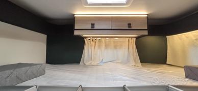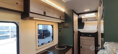 Mansardato di casa Xgo con letto matrimoniale trasversale in coda su motore Ford Transit 2.0 130 cv. 6 posti omologati e 4 posti letto. Lungo 6,97 e largo 2,34. Il veicolo di serie offre: Cruise Control con limitatore di velocità, freno di stazionamento elettrico, comandi radio al volante, specchietti regolabili elettricamente, doppio airbag, ABS-ESP, Start&Stop, sedili cabina girevoli con braccioli, retrocamera, radio touchscreen Apple Car Play e Android Auto, oscuranti cabina plissettati, frigorifero 141 Lt e riscaldamento Truma Combi 4 gas + CpPlus. Per renderlo ancora più bello abbiamo aggiunto il Pack Bronze (finestra porta cellula, zanzariera scorrevole, fodere coprisedili, precablaggio pannello solare), il Premium Pack (fari High Series con luci di svolta statiche, paraurti anteriore e modanature laterali in tinta con la carrozzeria, fari fendinebbia, cassetto portaoggetti con serratura, clima cabina automatico), oscurante + zanzariera in bagno, pannello solare 100W e veranda da 4 mt.Attenzione: a tutela della nostra clientela, garantiamo che le foto pubblicate sono tutte autentiche ed i veicoli inserzionati sono realmente presenti presso la nostra rivendita, pertanto, prendiamo le distanze da chi con poca chiarezza espone in vendita veicoli non avendone il possesso e con foto false ne destabilizzano il mercato. Vi Preghiamo di controllare tutti i dati dei veicoli insieme al venditore, nonostante tutta la massima attenzione che dedichiamo nell'inserimento dei dati, le nostre descrizioni potrebbero contenere errori di battitura.