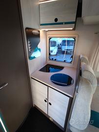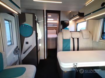 Semintegrale con letto nautico posteriore regolabile in altezza, ampio garage, letto basculante matrimoniale anteriore, bagno e doccia separati, frigo 140lt.