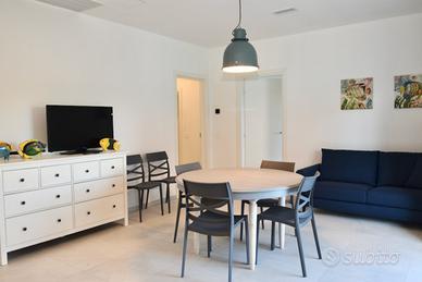 Nuovo appartamento trilocale al piano 2° di palazzina fronte mare, composto da spaziosa zona giorno con angolo cottura, balcone vista mare laterale, due camere matrimoniale con terzo letto entrambe con balcone, bagno con doccia, ripostiglio-cabina armadio; dotato di aria condizionata, lavatrice, fornelli a induzione, frigo con congelatore, tv, un posto auto per auto max mt 4.30 di lunghezza.. Ottima posizione per il centro e i servizi. Questa è una soluzione Pet friendly (un solo cane di piccola-media taglia): cortesemente Vi preghiamo di essere rispettosi degli arredi, di volervi dotare di teli divano se il vostro cane é abituato a salirvi, lasciare pulito il balcone e non arrecare disturbo ai vicini.